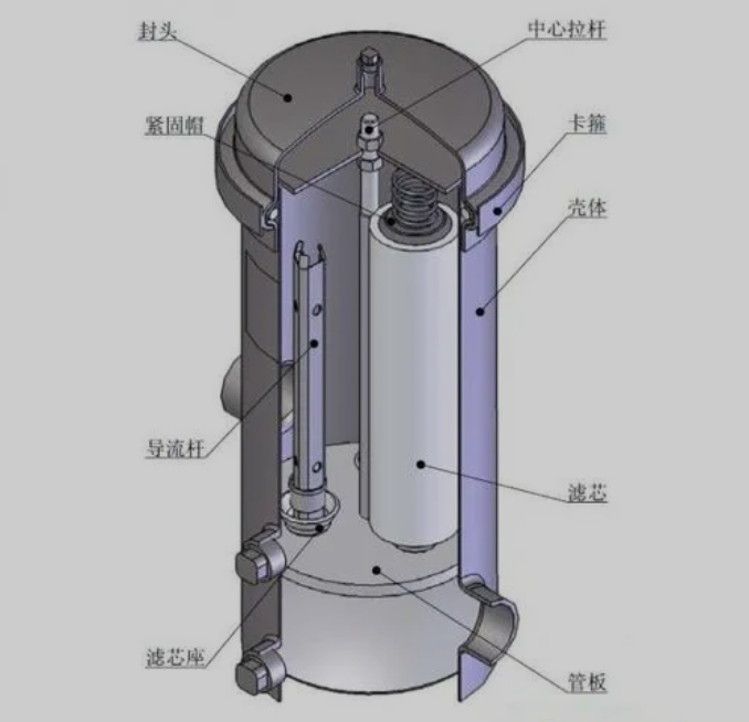 保安过滤器工作原理是待过滤液体由滤器进口压入,经滤芯自外向里透过滤层而被过滤成清澄液体,然后经出口排出。